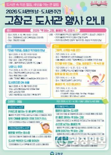 광장일보 주재영 기자 | 고창군도서관이 ‘제62회 도서관주간(12~30일)’을 맞아 ‘2026 책 읽는 고창, 올해의 책 선포식’을 중심으로 군민과 함께 독서문화 확산에 나선다.