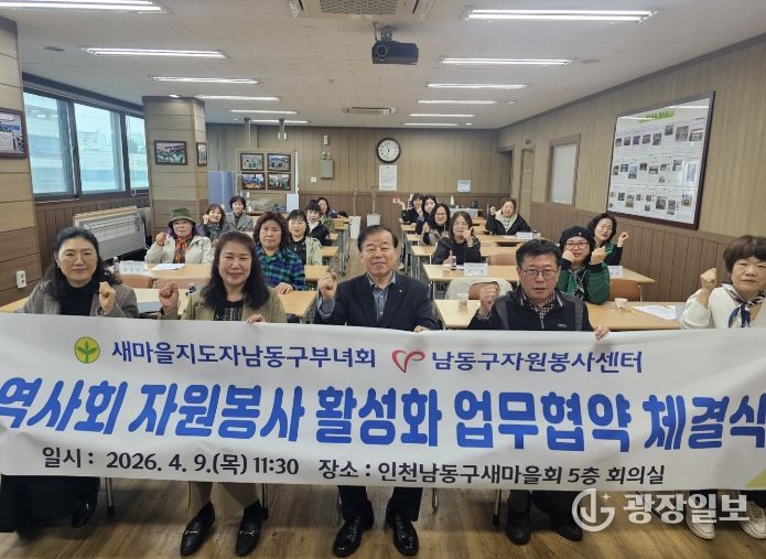 광장일보 주재영 기자 | 인천시 남동구 새마을지도자남동구부녀회는 남동구자원봉사센터와 최근 인천남동구새마을회 5층 회의실에서 지역사회 자원봉사 활성화를 위한 업무협약(MOU)을 체결했다고 13일 밝혔다.