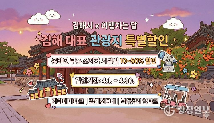 광장일보 주재영 기자 | 김해 주요 관광지 3곳이 문화체육관광부와 한국관광공사가 추진하는 ‘여행가는 달’과 연계한 할인 프로모션을 4월 한 달간 진행 중이다.