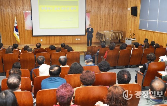 한 교수는 고독사 예방을 위한 이웃의 역할과 지역 리더가 가져야 할 공동체 의식, 행복한 마음가짐에 대해 강조하며 참석자들의 공감을 이끌어냈다.