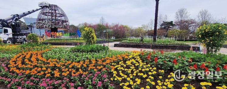 광장일보 주재영 기자 | 전남 함평군이 대한민국 대표 봄 축제인 나비대축제 개막을 앞두고 함평엑스포공원에 대형 꽃탑을 설치해 이목을 끈다.