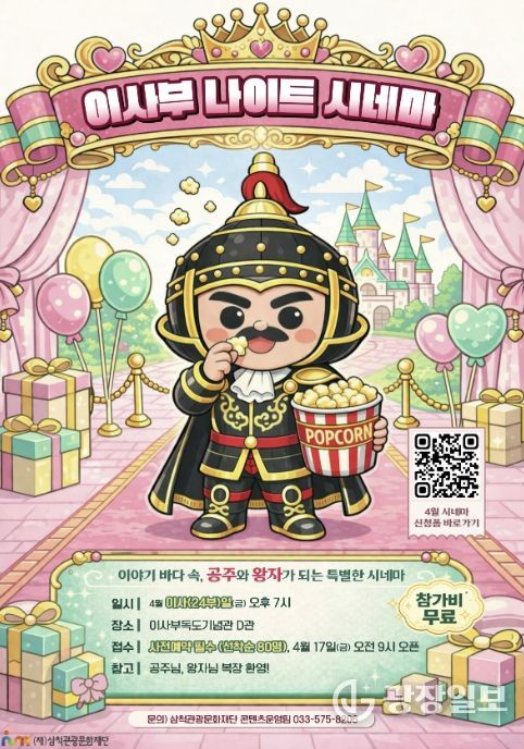 광장일보 이현나 기자 | 삼척관광문화재단은 이사부독도기념관에서 매월 24일 운영하는 야간 문화 프로그램'이사부 나이트 시네마'를 통해 시민 대상 문화 향유 기회를 확대한다.