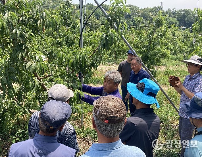 교육 대상은 복숭아 재배 경력 3년 이상 농가로 구성된 복숭아연구회 회원 38명이다.