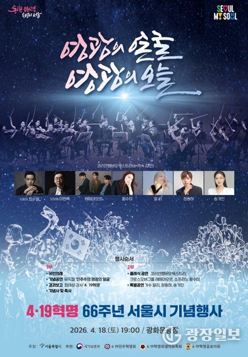 서울시는 4월 18일 오후 7시, 4·19혁명 당시 시민들이 경무대를 향해 행진했던 역사적 공간인 광화문광장에서 ‘4·19혁명 66주년 서울시 기념행사’를 개최한다고 밝혔다.