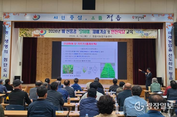 광장일보 주재영 기자 | 정읍시가 지난 14일 지역 농업인 100여 명을 대상으로 벼 신품종 ‘달하미’ 맞춤형 재배 기술 교육을 실시하며 고품질 쌀 생산 기반 확충에 나섰다.