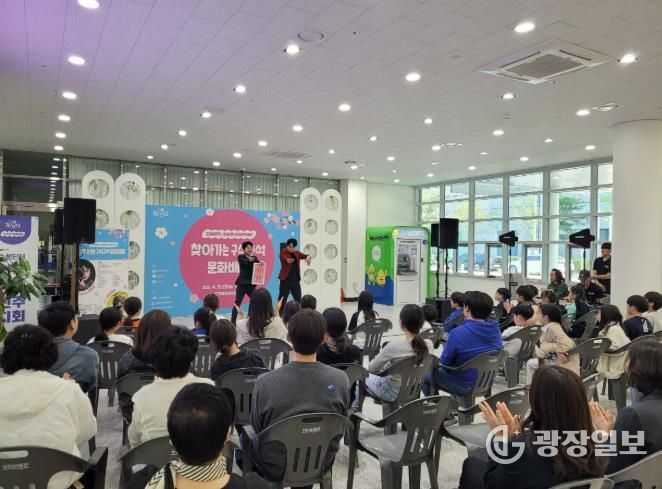 광장일보 주재영 기자 | 진주시는 지난 15일 충무공동 복합혁신센터에서 ‘구석구석 문화가 있는 날’ 4월 3주 차(3회차) 프로그램으로 『찾아가는 문화배달』 행사를 개최했다.