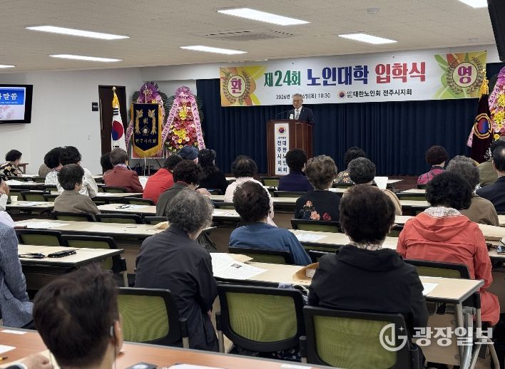 광장일보 주재영 기자 | 대한노인회 전주시지회(지회장 홍성언)는 16일 지회 강당에서 노인들의 배움과 사회참여 기회를 확대하기 위한 ‘제24회 노인대학 입학식’을 개최했다.