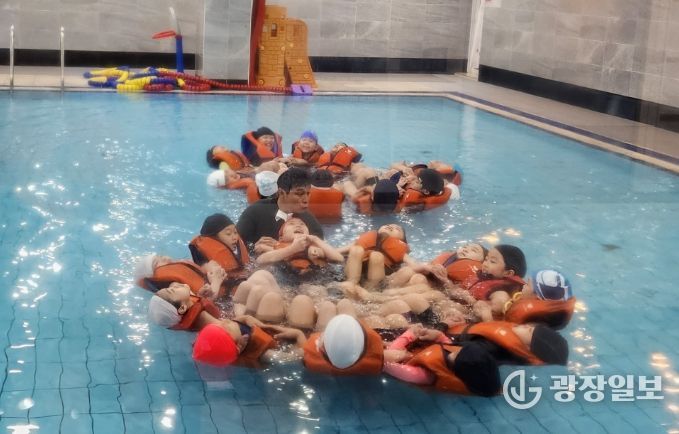 교육은 ▲구명조끼 착용 ▲수중에서 걷기 및 뛰기 ▲물에서 버티며 호흡하기 ▲누워 뜨기와 엎드려 뜨기 ▲물에서 체온 유지 ▲영법을 활용한 이동 등 학생들이 수상 활동 중 위기 상황에서 생존할 수 있는 능력을 키우는 데 중점을 두고 진행된다.