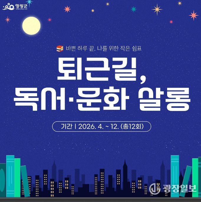 광장일보 주재영 기자 | 영광군에서는 평일 주간에 도서관 이용이 어려운 직장인을 대상으로 야간 독서문화프로그램 ‘퇴근길, 독서‧문화 살롱’을 4월 22일부터 운영한다고 밝혔다.