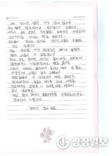 어머니는 편지에서 “청각장애와 언어장애뿐 아니라 정신적 고통까지 겪는 딸을 보며 어디에도 말할 곳이 없어 막막했다”며 “병원 동행부터 행정 절차까지 세심하게 도와주시고, 늘 웃음과 따뜻한 말로 위로해주신 선생님께 깊이 감사드린다”고 전했다.