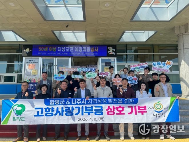 광장일보 주재영 기자 | 전남 함평군과 나주시가 고향사랑기부금 상호 기부를 통해 지역 간 상생협력 강화에 나섰다.