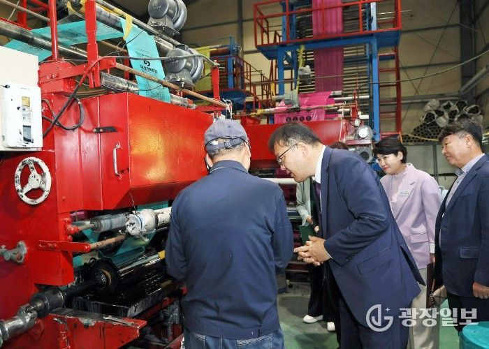 광장일보 주재영 기자 | 장금용 창원특례시장 권한대행은 16일 중동 사태 장기화로 나프타 수급 차질이 우려되는 상황에서 대안으로 주목받는 재생원료를 활용해 종량제봉투를 생산하는 관내 기업 ‘인테크’를 방문했다.