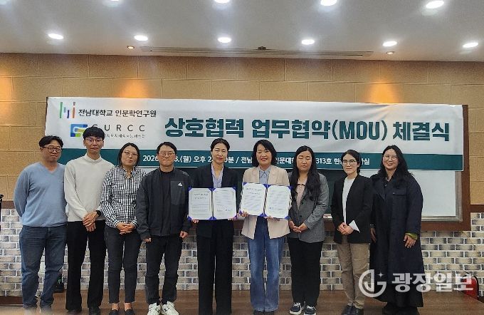 17일 전남대학교에 따르면, 인문학연구원(원장 류도향)은 지난 4월 13일 오후 2시 30분 인문대학 1호관 현공세미나실에서 광주광역시도시재생공동체센터(대표이사 손명희)와 협력 및 교육 활성화를 위한 업무협약(MOU)을 체결했다.