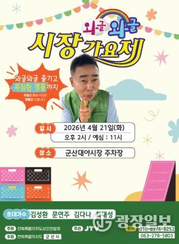 광장일보 주재영 기자 | 전통시장과 지역 상권에 활력을 더하는 ‘와글와글 시장가요제’가 군산 대야전통시장에서 열린다.