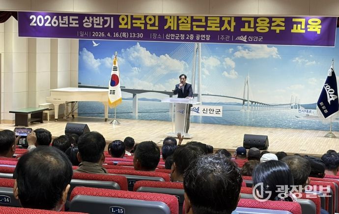 광장일보 주재영 기자 | 신안군은 외국인 계절근로자의 인권 보호와 안전한 고용 환경 조성을 위해 지난 16일, 관내 농·어업 고용주를 대상으로 ‘2026년 상반기 외국인 계절근로자 고용주 인권 및 3대 보험 의무가입 교육’을 실시했다고 밝혔다.