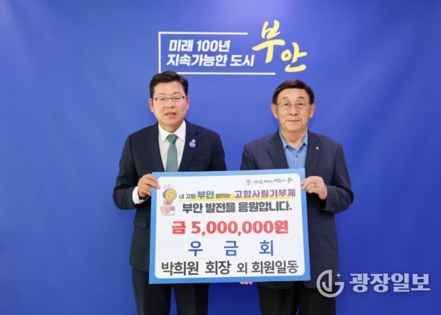 박희원 우금회 회장은 “타지에서 생활하면서도 마음속 깊은 곳에는 늘 고향 부안이라는 든든한 뿌리가 있었다”며 “회원들의 정성이 담긴 이번 기부금이 부안의 지속 가능한 성장을 뒷받침하고 군민들의 삶이 더 따뜻하고 풍요로워지는 데 작게나마 보탬이 되길 희망한다”고 말했다.