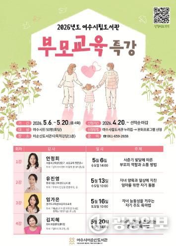 광장일보 주재영 기자 | 여수시립도서관은 가정의 달을 맞아 부모 역할의 이해와 올바른 자녀 양육에 도움을 주기 위해 ‘부모 교육 특강’을 운영한다.