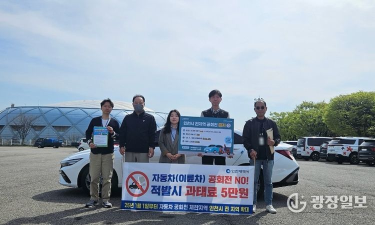 광장일보 주재영 기자 | 인천 미추홀구는 2025년부터 한층 강화된 ‘자동차 공회전 제한’을 알리기 위해 16일 오전 문학경기장에서 인천시와 합동으로 공회전 단속 및 홍보 캠페인을 실시했다.