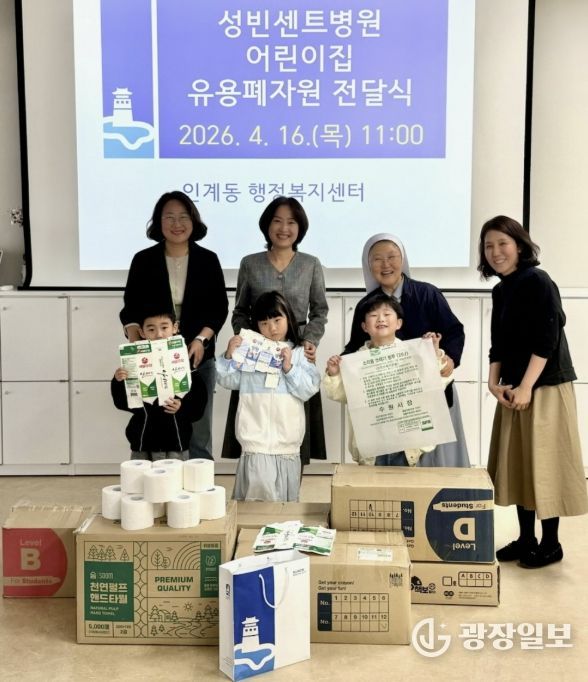 광장일보 박균현 기자 | 수원시 팔달구 인계동은 지난 16일 오전, 성빈센트병원 어린이집으로부터 아이들이 정성껏 모은 유용 생활 폐자원을 전달받았다고 밝혔다.