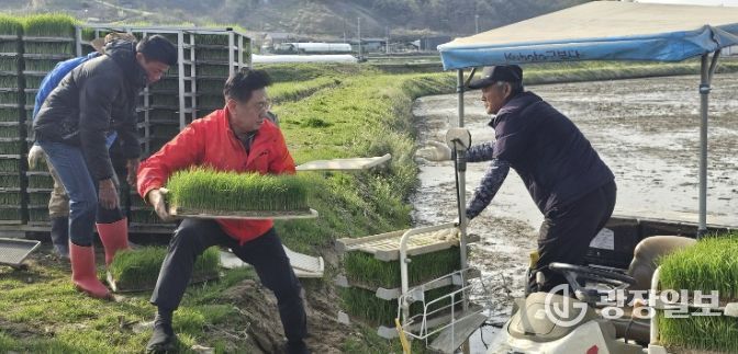 광장일보 주재영 기자 | 양평군은 지난 15일 지평면 수곡리에 위치한 전경복 농가에서 올해 첫 모내기를 실시했다고 밝혔다.