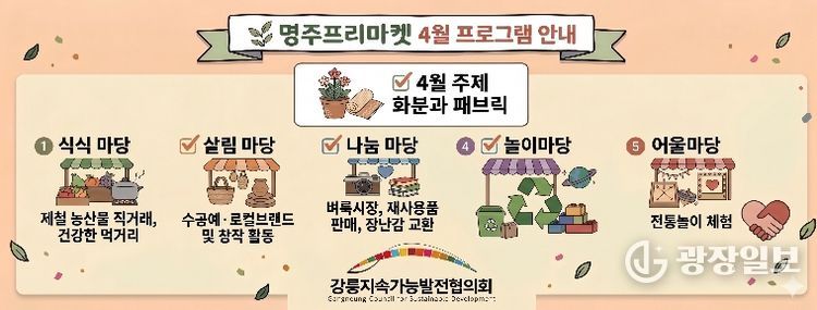 광장일보 이현나 기자 | 강릉지속가능발전협의회(상임회장 김태경)가 주최·주관하는 '2026년 4월 명주프리마켓'이 오는 18일 11시부터 16시까지 강릉 대도호부 관아에서 개최된다.