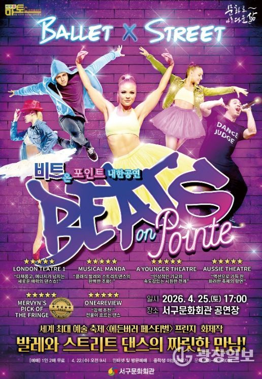광장일보 주재영 기자 | 서구문화회관은 4월 25일 오후 5시 서구문화회관 공연장에서 4월 서구愛 마토콘서트로 댄스 퍼포먼스'비트 온 포인트'내한 공연을 개최한다.