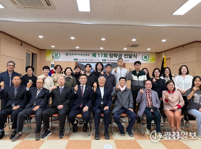 광장일보 주재영 기자 | (재)옥포케이비원장학회(이하 장학회)가 17일 제17회 장학금 수여식을 열고, 총 16명의 장학생에게 총 3,500여만 원 규모의 장학금을 전달했다고 밝혔다.