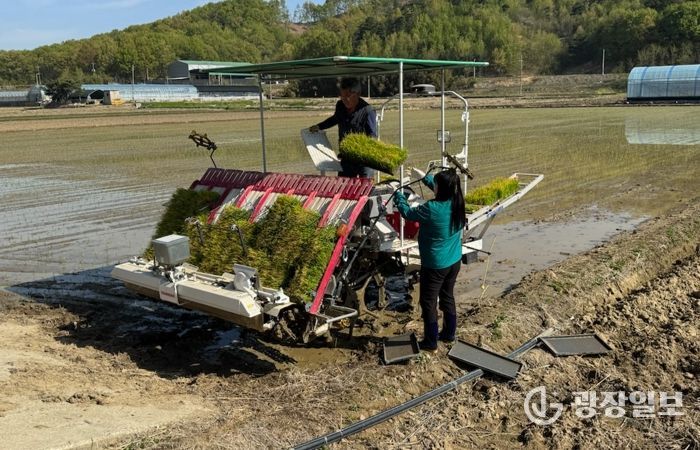 이날 모내기는 조생종 품종인 ‘해담벼’로 진행됐다. 기후 변화에 따른 재배 환경 불확실성에 대응하고 안정적인 쌀 생산 기반을 확보하기 위해 통상적인 이앙 시기보다 앞당겼다.