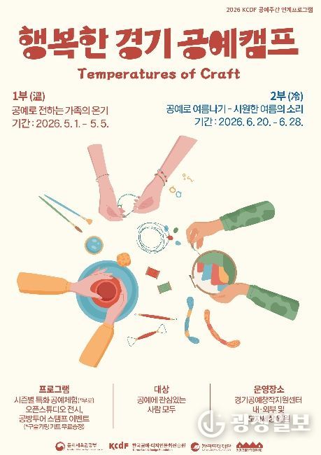 광장일보 박균현 기자 | 한국도자재단이 오는 5월 1일부터 경기공예창작지원센터(여주) 일원에서 체험·전시·이벤트를 결합한 참여형 프로그램 ‘2026 행복한 경기 공예 캠프’를 개최한다.