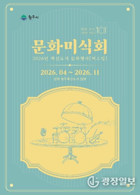 광장일보 이현나 기자 | 원주시는 오는 21일 낮 12시, 건강보험심사평가원 1사옥 앞 야외 공연을 시작으로 ‘2026년 혁신도시 문화미식회’의 막을 올린다. 이어 25일 오후 2시에는 혁신도시 미리내사거리 분수광장에서 버스킹 공연을 진행한다.