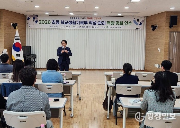 광장일보 주재영 기자 | 경상북도김천교육지원청은 2026년 4월 15일(수) 김천학생문화예술센터에서 관내 초등학교 학교생활기록부 업무담당자 및 희망 교사 30명을 대상으로 '2026 초등 학교생활기록부 작성・관리 역량 강화 연수'를 실시했다.