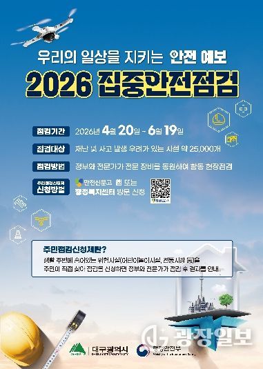광장일보 주재영 기자 | 대구 중구는 지난 20일부터 6월 19일까지 공공 및 민간 시설을 대상으로 ‘2026년 집중안전점검’을 실시한다.
