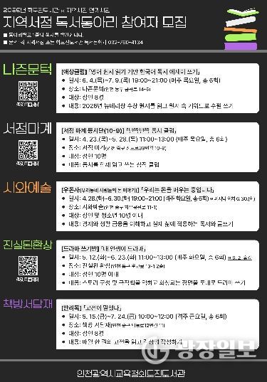 광장일보 주재영 기자 | 인천광역시교육청화도진도서관은 지역 독서 문화 활성화를 위해 ‘지역서점 연계 독서동아리’ 참여자를 모집한다고 20일 밝혔다.
