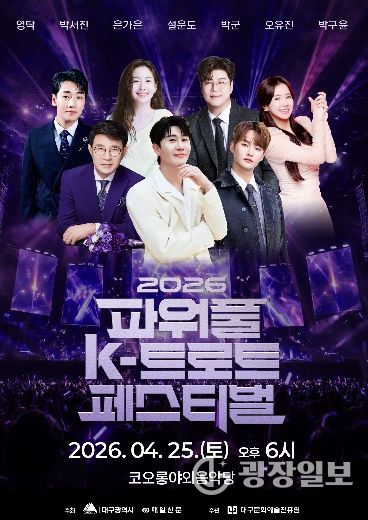 광장일보 주재영 기자 | 대구광역시는 오는 4월 25일 오후 6시, 코오롱 야외음악당에서 ‘2026 파워풀 K-트로트 페스티벌’을 개최한다.