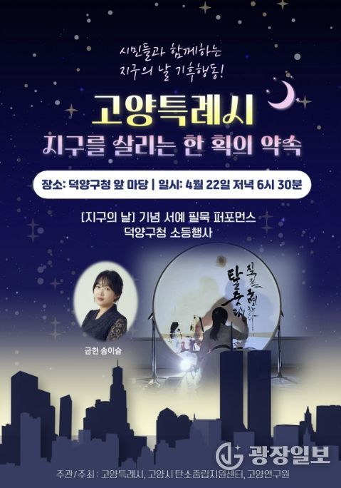 광장일보 주재영 기자 | 고양특례시가 제56주년 지구의 날을 기념해, 오는 22일 저녁 8시부터 10분간 고양시 전역에서 소등행사를 진행한다.