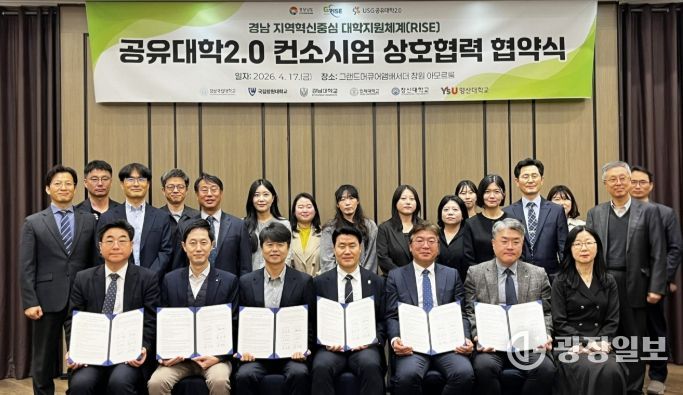 광장일보 주재영 기자 | 경상국립대학교 라이즈(RISE) 사업단 지역교육혁신센터는 4월 17일 창원 그랜드머큐어호텔에서 ‘공유대학2.0 컨소시엄 과제’ 참여대학 간 상호 협력 협약(MOU)을 체결했다.