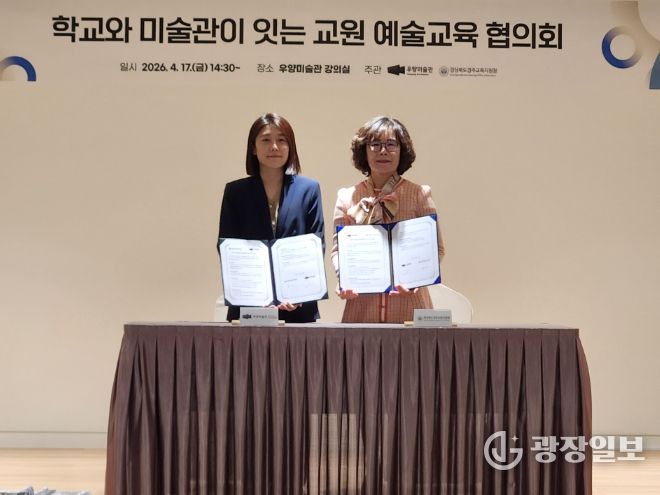 광장일보 주재영 기자 | 경상북도경주교육지원청은 4월 17일 14시 30분부터 우양미술관에서 지역 문화예술 자원을 활용한 학교 예술교육 활성화를 위해 업무협약을 체결했다.