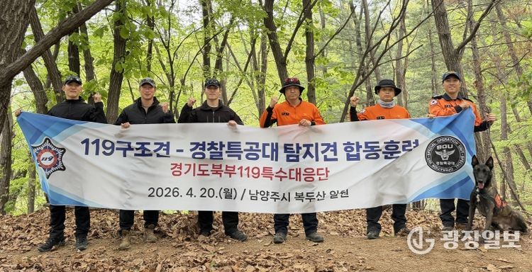 광장일보 박균현 기자 | 경기도북부119특수대응단은 20일 남양주시 복두산 구조견센터 훈련장에서 119구조견과 경찰특공대 탐지견이 참여하는 합동훈련을 실시했다.