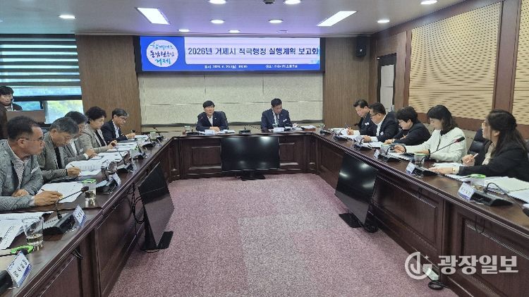 광장일보 주재영 기자 | 거제시는 20일 시청 소회의실에서 조직 내 적극행정 문화를 확산하고, 실천 의지를 다지기 위해 ‘2026년 거제시 적극행정 실행계획 보고회’를 개최했다.