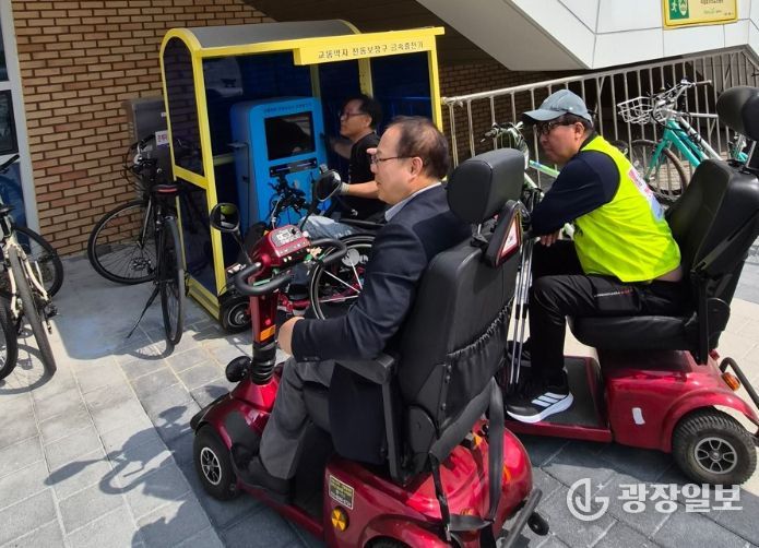 이번 현장점검은 디딤돌장애인자립생활센터(센터장 이우연)의 제안으로 마련됐으며, 공원 내 설치된 전동스쿠터 급속충전기의 실제 이용 과정과 관리 상태를 확인하기 위해 진행됐다.