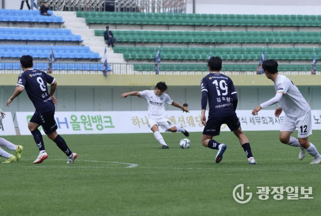 이날 경기에서 제천은 경기 초반부터 적극적인 압박과 조직적인 플레이로 주도권을 잡았다. 전반 45분 정혁이 환상적인 중거리 슈팅으로 선제골을 터뜨리며 앞서 나갔다.
