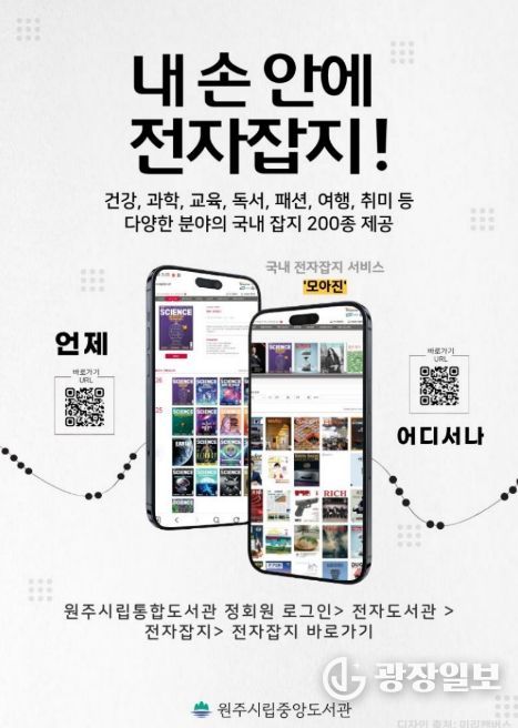 광장일보 이현나 기자 | 원주시립중앙도서관은 디지털 시대에 발맞춰 국내 전자잡지 구독 서비스 ‘모아진’을 운영하고 있다.