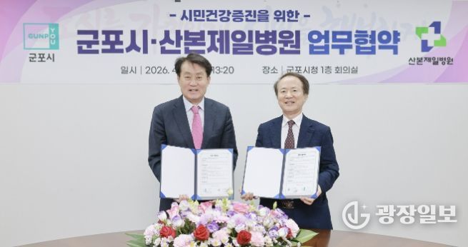광장일보 주재영 기자 | 군포시는 4월 20일 시청 1층 회의실에서 산본제일병원과 ‘시민 건강증진 및 의료서비스 질 향상을 위한 업무협약(MOU)’을 체결했다.