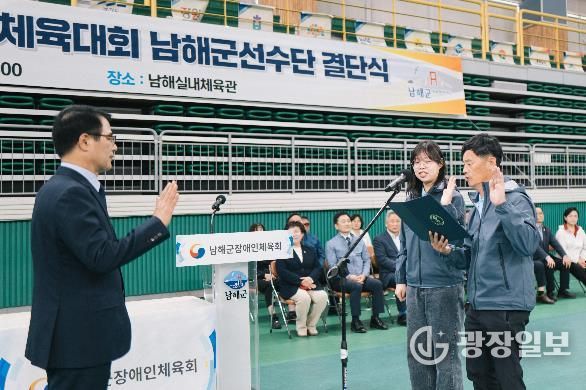 광장일보 주재영 기자 | 남해군장애인체육회는 지난 16일 남해실내체육관에서 ‘제29회 경상남도장애인생활체육대회’ 선수단 결단식을 개최했다.