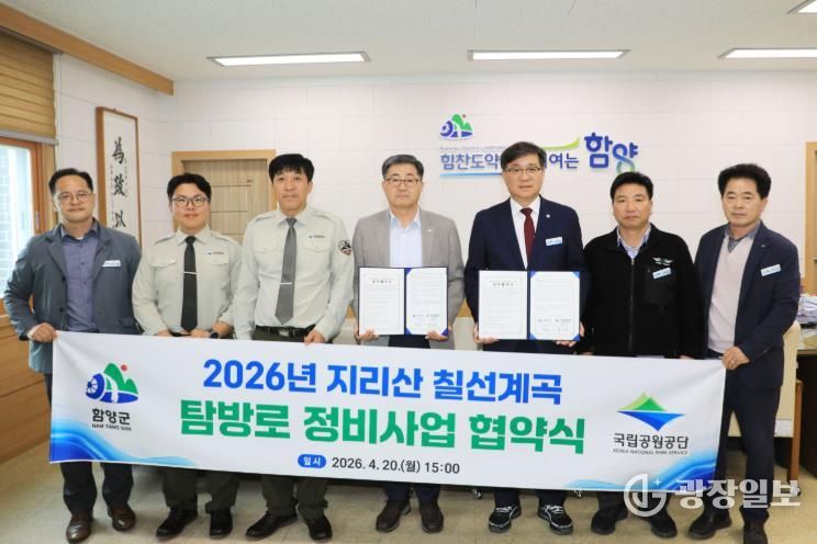 이번 협약은 함양군과 지리산국립공원경남사무소가 상호 협력체계를 구축해 칠선계곡 탐방로의 안전성과 이용 편의를 높이고, 지속 가능한 탐방환경을 조성하기 위해 마련됐다.