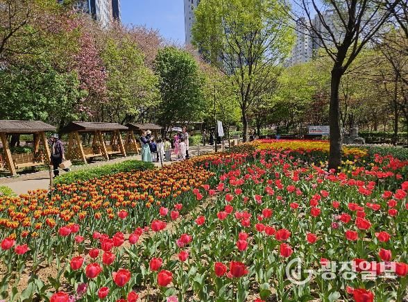 특히, 산책로를 따라 이어진 튤립 꽃길은 가족, 연인 등 방문객들에게 소중한 추억을 기록할 수 있는 ‘도심 속 힐링 포토존’ 역할을 톡톡히 하고 있다.