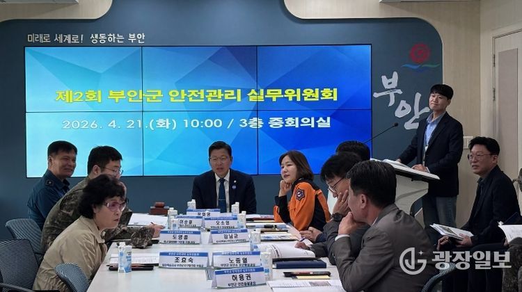 광장일보 주재영 기자 | 부안군은 21일 부안군청 3층 중회의실에서 2026년 제2회 안전관리 실무위원회를 개최하고 오는 5월 2일 개최되는 제13회 부안마실축제 안전관리계획을 심의·의결했다고 밝혔다.