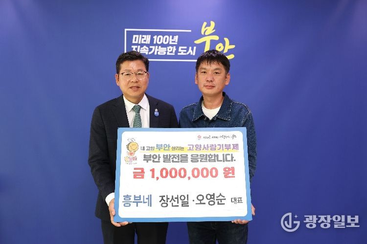 광장일보 주재영 기자 | 부안군은 지난 20일 관내에서 한식당 ‘흥부네’를 운영하는 장선일·오영순 대표가 고향사랑기부금 100만원을 기탁했다고 밝혔다.