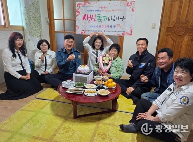 또한 관산읍 파출소(소장 한승국)와 방범대원들은 어르신 가정을 방문해 생일 케이크 촛불을 밝히고 축하 노래를 함께 부르며 건강과 장수를 기원하는 시간을 가졌다.