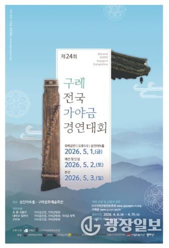 광장일보 주재영 기자 | 전남 구례군이 주최하고 (사)가야금병창보존회가 주관하는 ‘제24회 구례 전국 가야금 경연대회’가 오는 5월 2일부터 3일까지 이틀간 열린다.